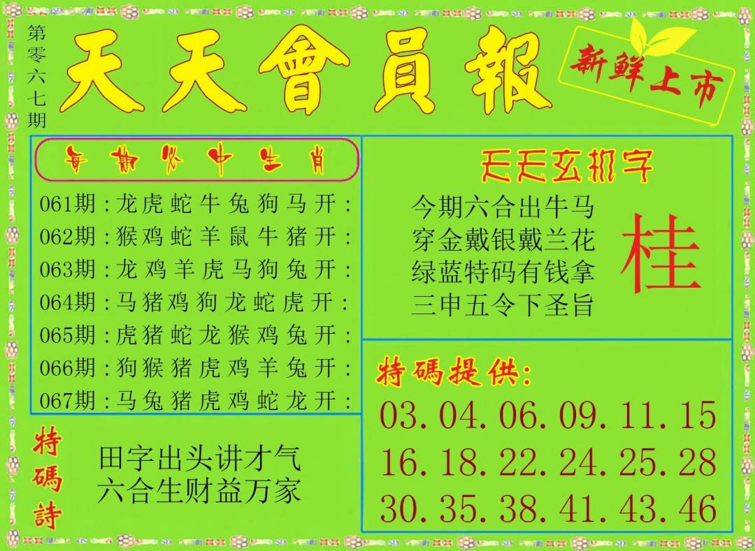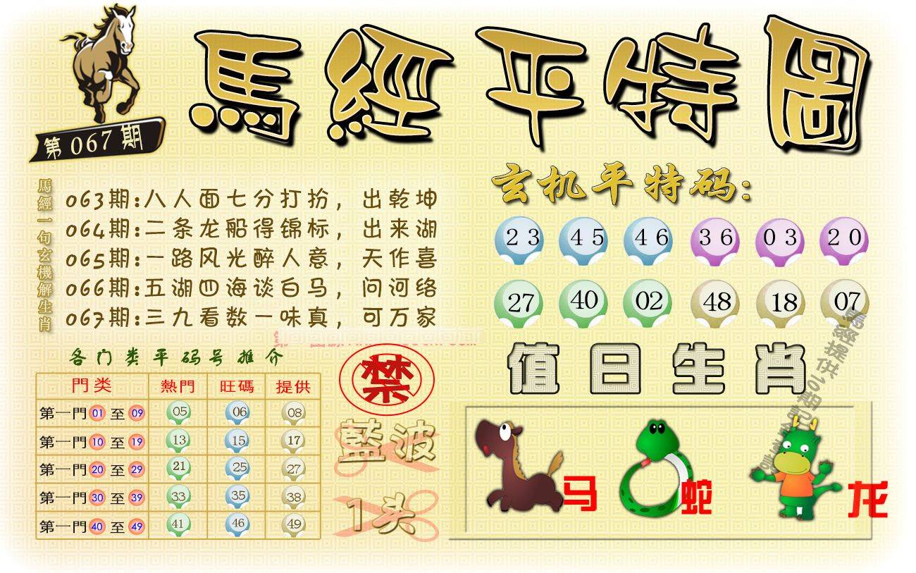| 067期 | 马鼠蛇 | 猪兔 | 鼠 |